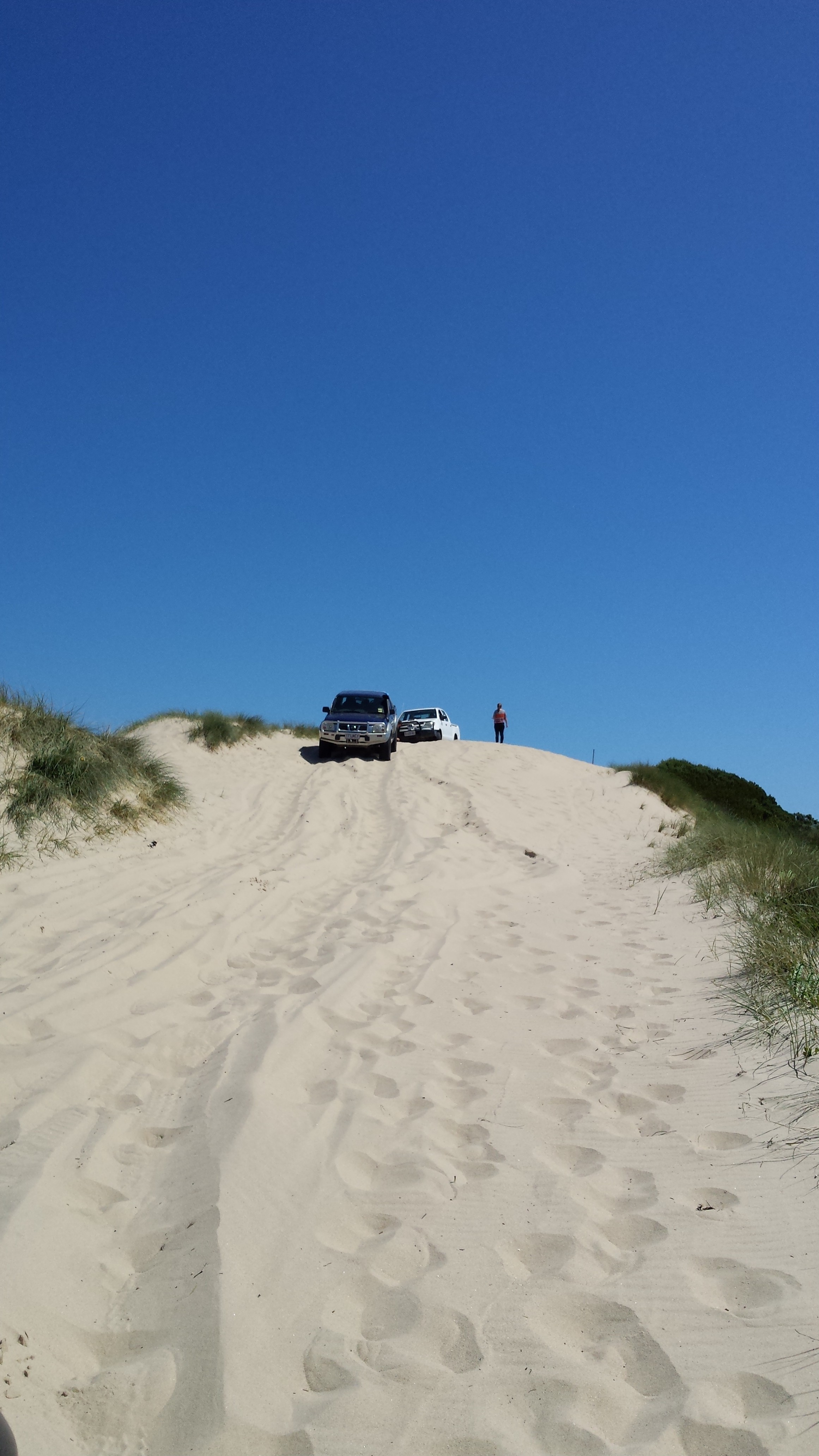 It is always advisable to travel with at least one other vehicle when beach driving. You need a snatch strap to use, just in case you have to pull another vehicle out if they get bogged, or in our case, we had travelled up a sand dune and had to ‘snatch’ one of our party up over a sand dune. He had nearly made it to the top. All this is part of the fun.